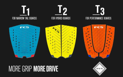 Tracción FCS. 3 modelos distintos para cada tipo de tabla. Los mejores agarres para mantener al surfista conectado a la tabla.